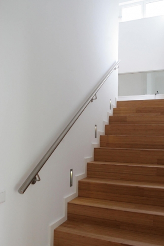 Durchblicke zwischen den einzelnen Ebenen sowie die Erweiterung der Ebenen in den Außenbereich machen die Besonderheit des Wohnhauses aus.