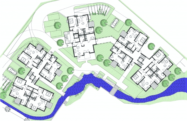 Inmitten dieser Kulisse werden wir eine attraktive Wohnanlage, bestehend aus 5 einzelnen Häusern mit insgesamt 31 modernen und behindertenfreundlichen Eigentumswohnungen inkl. integrierter Tiefgarage errichten. Neben dieser Wohnanlage entsteht eine Pflegeeinrichtung mit 49 Plätzen."