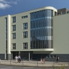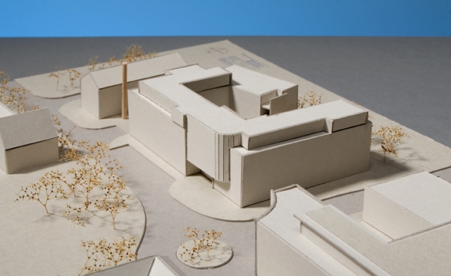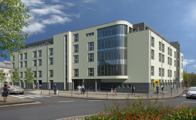 Der Entwurf des Gebäudes sieht einen 4-geschossigen Baukörper mit einem weiteren zurückversetzten Staffelgeschoss vor.