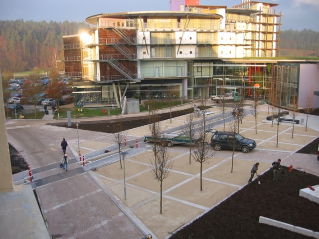2006 wurden die Eingänge des Klinikneubaus und angrenzender Therme zur Optimierung der Zugangssituation zusammengelegt und hierfür auch der Vorplatz umgestaltet.